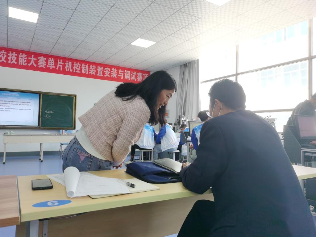 许秀玲老师所授课程为《单片机应用技术》,在课堂上为大家呈现了一堂思路清晰、课程思政融入自然、重难点突出的多元授课。授课过程突出了“学中做、做中学”的教学模式,极大的调动了学生自主学习的积极性,充分体现了教学改革中在课堂上以学生为主体,教师为主导的教学要求。整个公开课新颖的教学模式、生动活泼的教学方法让人耳目一新。听课教师们认真详细记录课堂环节设计、教学方法、学生学习状态。