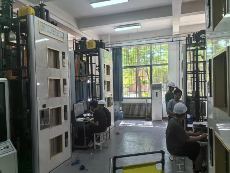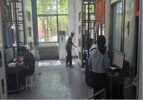 智能电梯装配调试与检验比赛现场,我校选手与西安航空职业技术学院选手同台竞技,竞赛内容包括电梯电气控制原理图设计与绘制、电梯机构安装与检测装置调整、电梯电气控制柜的器件安装与线路连接、电梯控制程序设计与调试、电梯故障诊断与排除以及运维优化与保养等内容。整个比赛过程对接国赛规程办赛,组织严密、流程规范、标准严格。